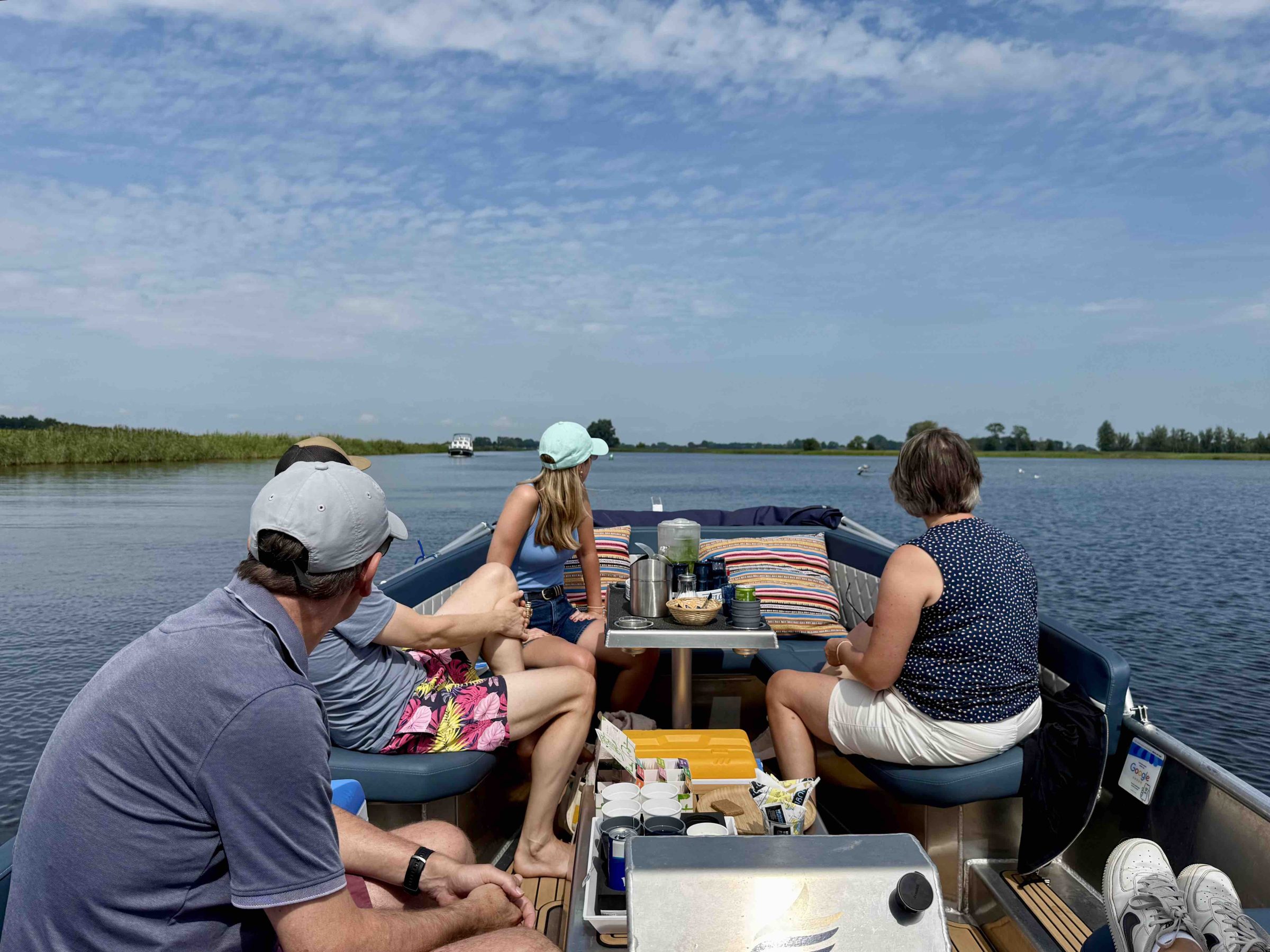 In 2025 is de sloep voorzien van een stevige waterdichte biminitop. Hierdoor kunnen we er samen voor kiezen, bij minder weer, of juist op hele zonnige dagen, om de boot gedeeltelijk of geheel te overkappen. Is het weer te slecht om te varen? Geen zorgen! U kunt uw reservering kosteloos annuleren tot 48 uur voor de huurdatum, of kosteloos omboeken tot 24 uur van tevoren. Uw vaarplezier staat voorop!