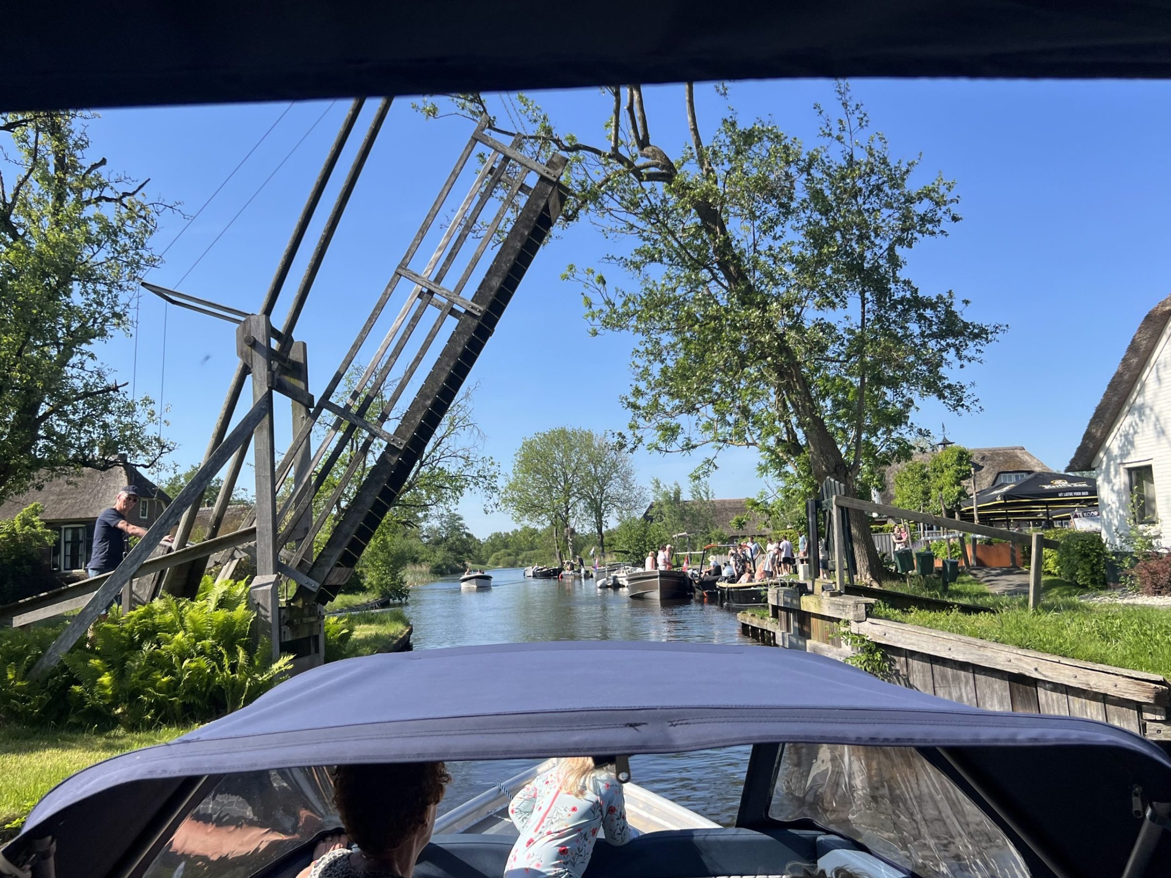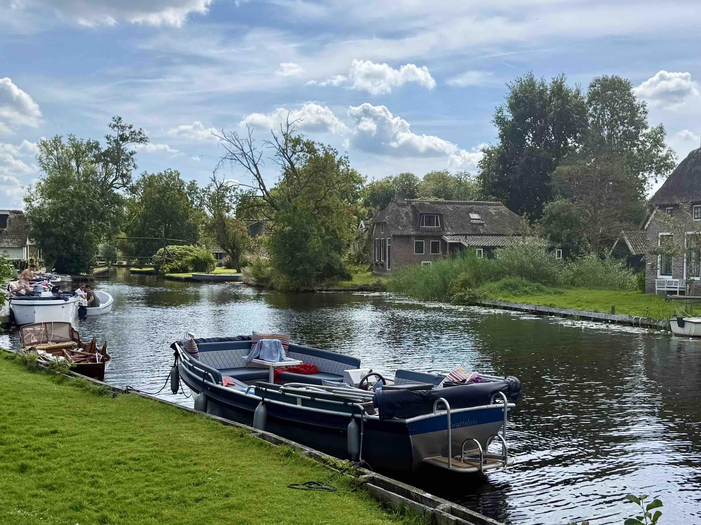 Uw bestemming is het authentieke waterdorp Dwarsgracht. De lange gracht die door het dorp slingert vormt het hart van deze karakteristieke plek. Terwijl u langs rietgedekte boerderijen, houten bruggetjes en groene oevers vaart, ervaart u de charme van een waterdorp zoals het vroeger was.